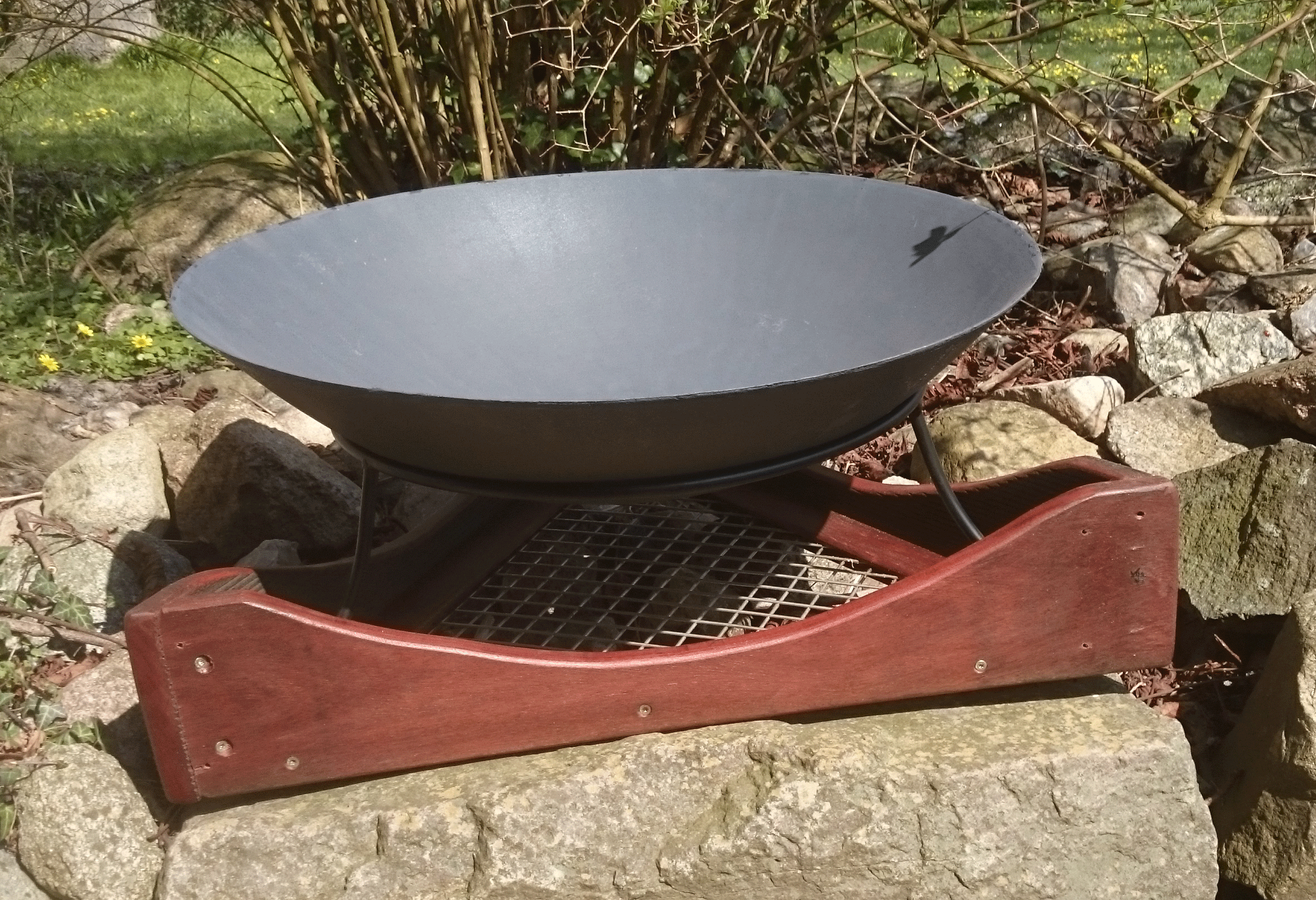 Bålfadet kan hæves fra jorden ved brug af rammen. Cirka fem centimeter hvis den flade side vender nedad, og cirka det dobbelte hvis buen vender nedad.
