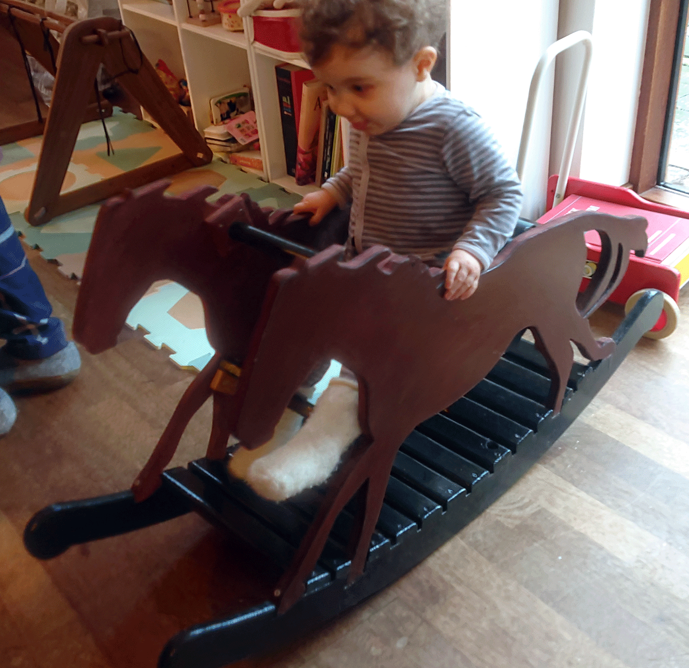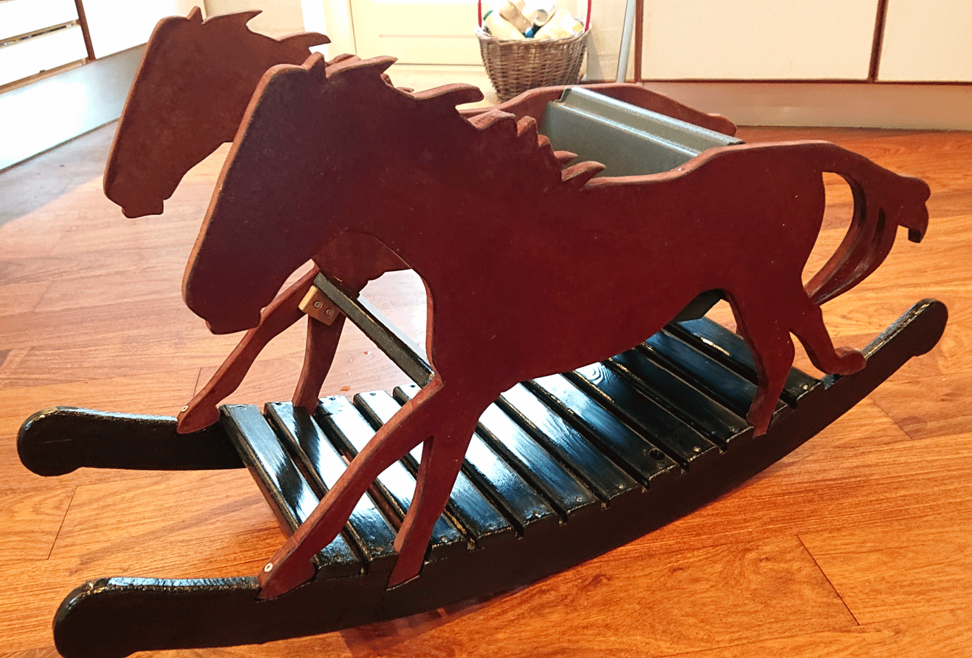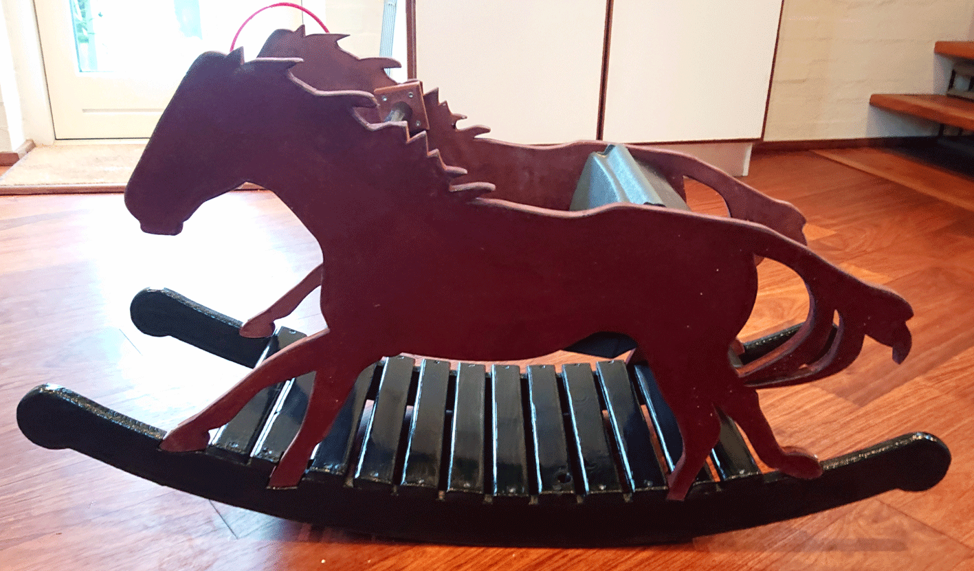 Før jeg erhvervede mig min første (rigtige) hest var jeg den stolte ejer af en fyrrig gyngehest, som beklageligvis er løbet væk. Nu er næste generation på banen, men Clara er ikke helt klar til dansk varmblod, så man må jo forsøge at hjælpe sit dejlige barnebarn. Derfor et helhejrtet forsøg på at genskabe vidunderet.