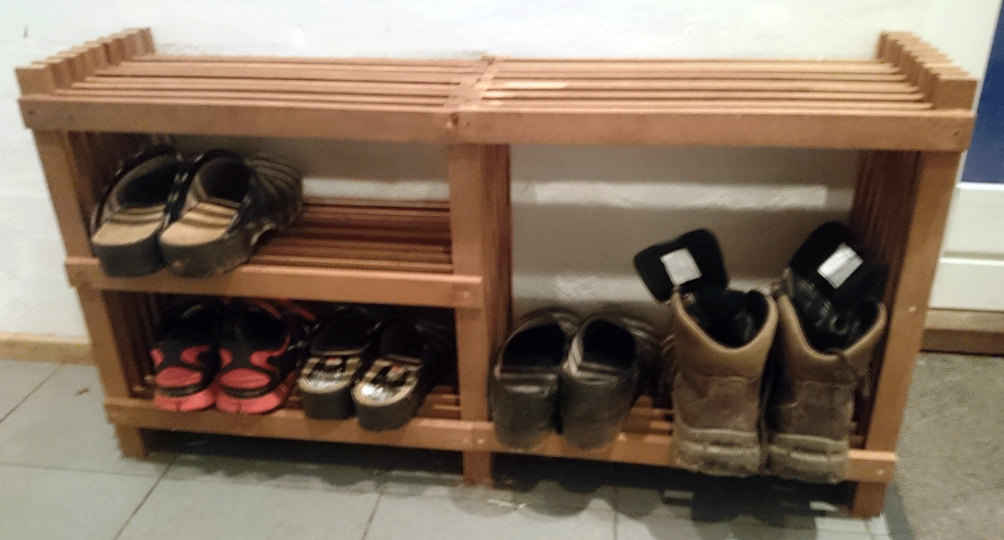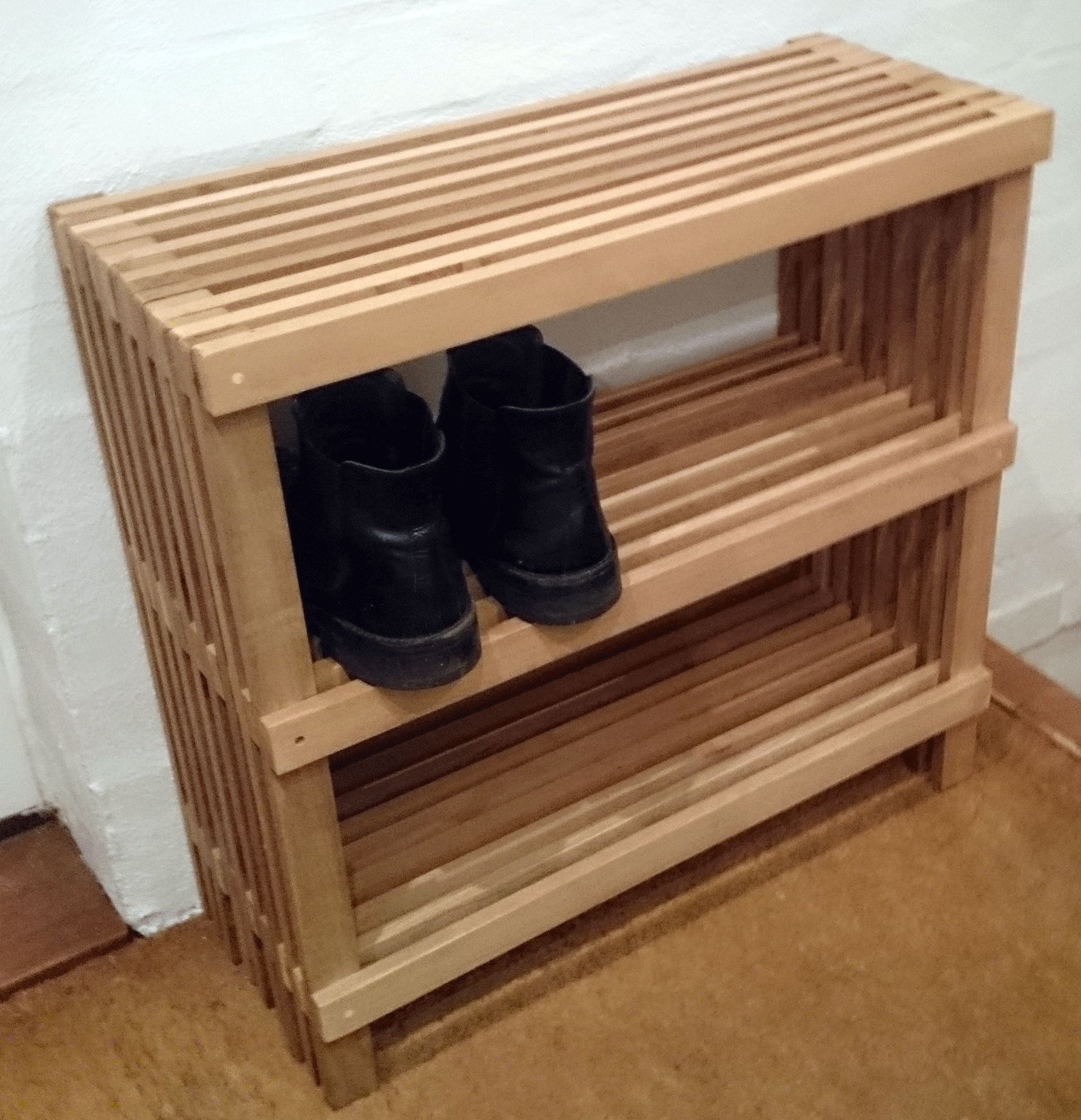 En dynge lameller af kirsebærtræ blev til en lille skohylde.